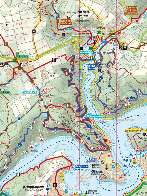 Im Nationalpark Kellerwald-Edersee gelegen bietet die Region eine Vielzahl von Wanderwegen und Rundwanderwegen rund um den Edersee und im Nationalpark.